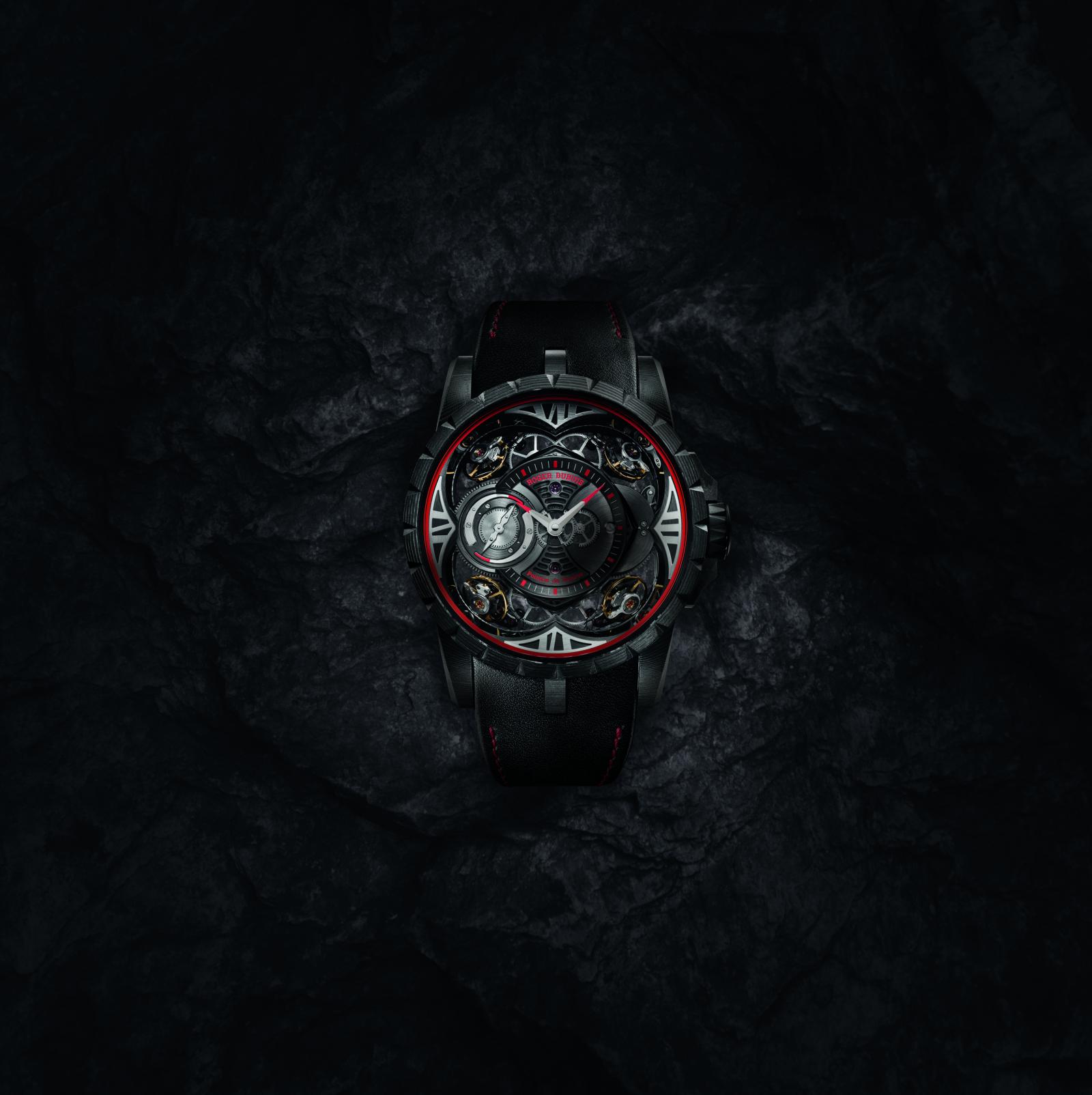 Не может оставить равнодушным и агрессивный дизайн каждого из восьми экземпляров этой лимитированной серии, в основе которого — оригинальная техника обработки карбона. Черные, необыкновенно легкие и излучающие ауру естественной силы, новейшие часы Roger Dubuis Excalibur Quatuor – Карбон — это яркая иллюстрация того, что происходит, когда Мануфактура, известная своим мастерским владением невероятными технологиями, ставит себе на службу силу земного притяжения.