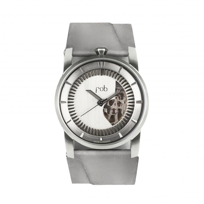 В переводе с английского ‘fob’ – это как раз "кармашек для часов". В современных версиях дизайн-студии FOB Paris часы могут быть на цепочках и на браслетах, а могут быть вставлены в отполированные стальные браслеты-манжеты.