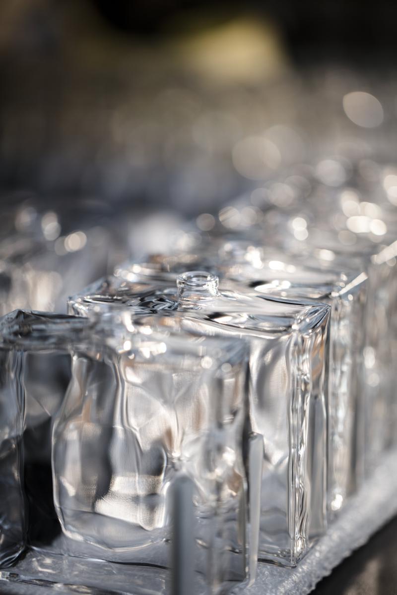 В песне, звучащей в ролике, есть слова «…running to myself» («…бегу к себе»), под которые актриса буквально врезается в стеклянную стену, составленную из сотен флаконов нового аромата.